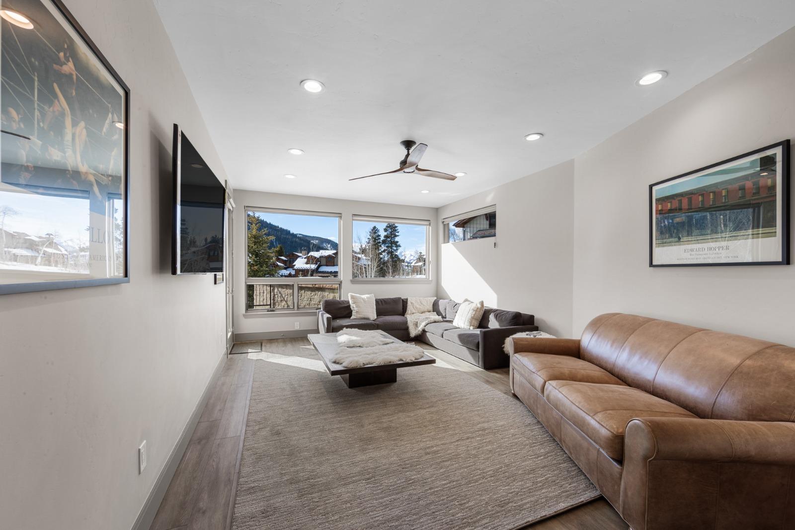 This rental has 3 bedrooms and 3 bathrooms, sleeping up to 12 guests and features stunning mountain views, a cozy fireplace, and access to the East Lake Clubhouse with a pool, hot tub, and sauna. Located near Keystone Lake, it’s just a short walk to shops, restaurants, and resort shuttles for easy mountain access.