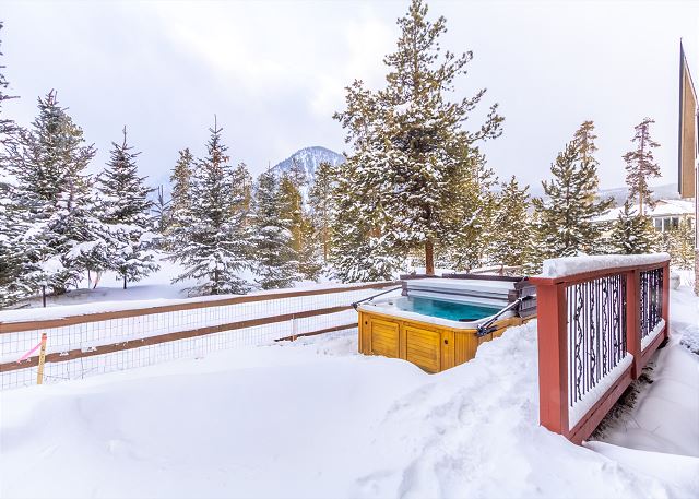 Opposite the living area is the full-sized gourmet kitchen. The kitchen is stocked with all the essential cookware and tableware to make a meal at your mountain retreat! It features a kitchen island, granite countertops, double wall ovens, two sinks and stainless steel appliances. There is also plenty of storage with custom cabinetry and a walk-in pantry. The formal dining area seats ten comfortably, perfect for enjoying dinner with the entire family. Additional seating can be found in the breakfast nook, with seating for 4 and offers a great view of the second deck. The second spacious deck provides access to a private hot tub, outdoor seating, and beautiful views.