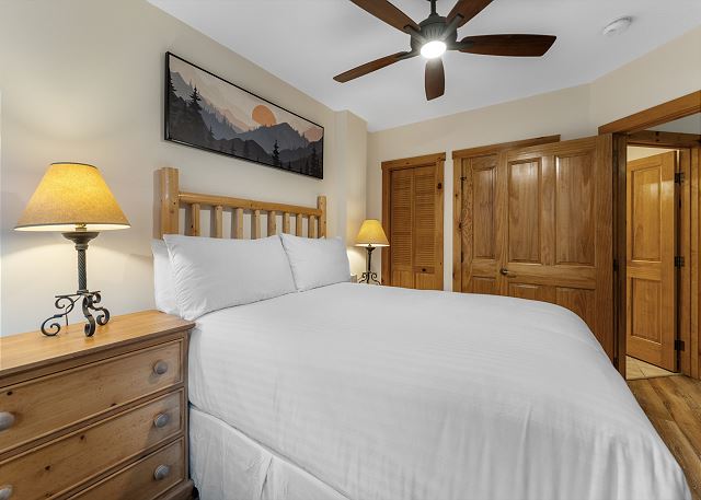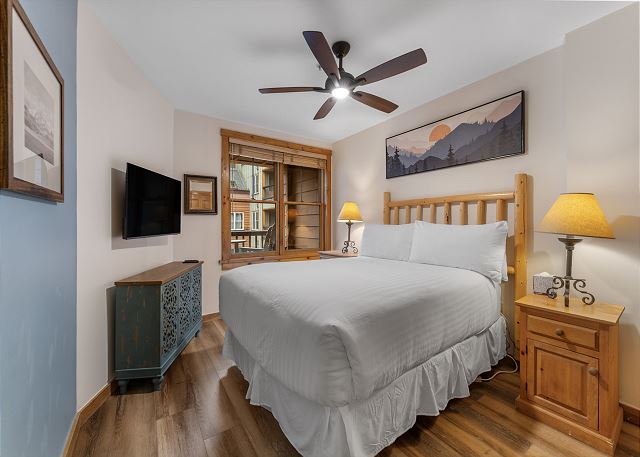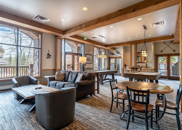 Buffalo Lodge offers convenient on-site amenities including ski lockers, outdoor hot tubs, and a welcoming lobby lounge with a pool table. Guests also enjoy access to the heated outdoor pool and additional hot tubs at neighboring Dakota Lodge. Whether you're hitting the slopes in winter or enjoying mini golf and the Dercum Square ice rink in summer, this condo puts you steps from all the year-round fun of River Run Village.