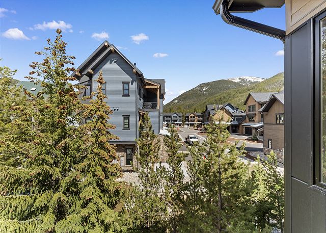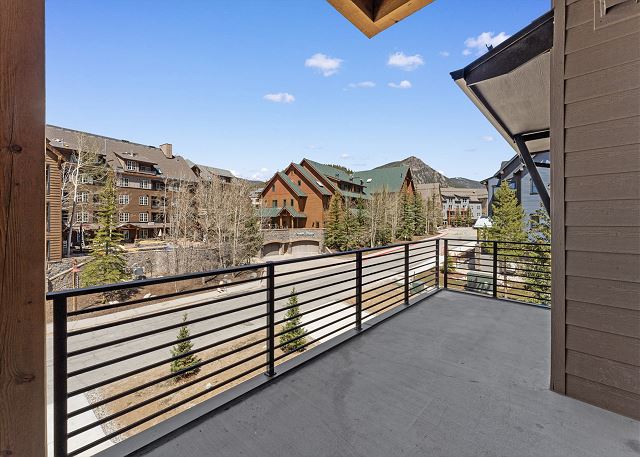 Making your way up to the third floor, you will be greeted by an open-concept living area featuring a flat-screen TV, queen-size sleeper sofa, gas fireplace, and mini bar with wine fridge. Access to the balcony is available through the living area, both featuring outdoor seating and fire pits.
