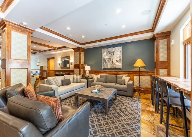 Guests have access to a range of complex amenities, including a steam room, outdoor pool and hot tub, fitness center, and ski lockers. After a day on the slopes, explore nearby River Run Village, just minutes away, where you'll find shops, restaurants, and après-ski entertainment.