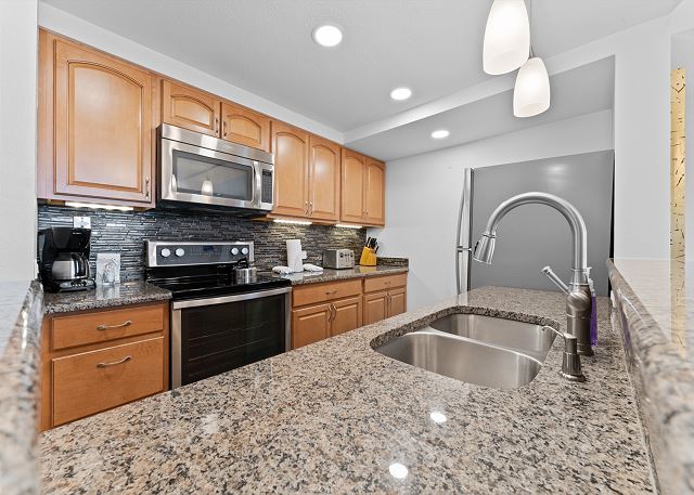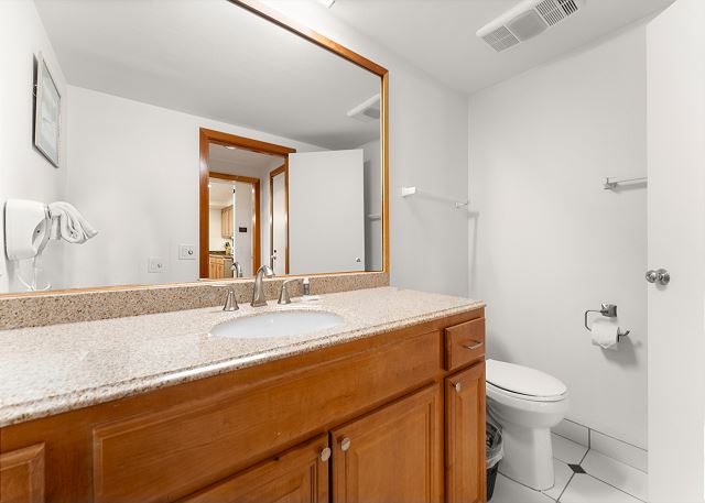 The fully equipped kitchen has everything you need to prepare meals away from home, and the dining table comfortably seats six for shared dinners and gatherings. A convenient half bathroom is located just off the entryway.