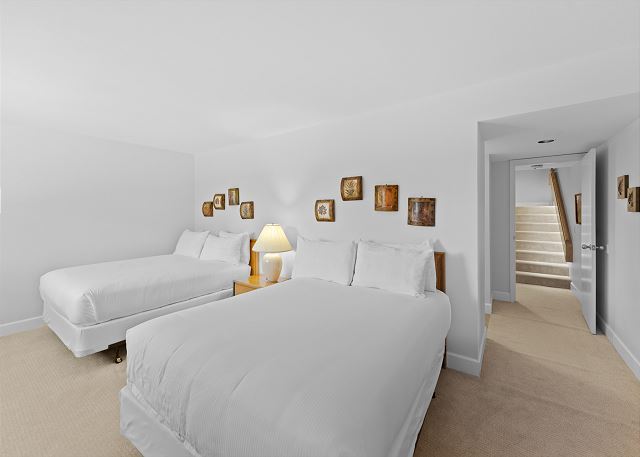 **Ivory White Bedding** This property has been upgraded with ivory white bedding modeled after high-end hotels and resorts. Enjoy the luxury of a soft, white-striped duvet cover with a medium thick, high quality down alternative duvet. Featuring an uncompromising and industry leading standard of cleanliness, the duvet covers are laundered after each and every guest stay. The entire bed is remade with fresh, white linens for each guest arrival.