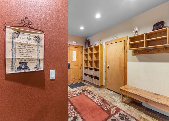 The entryway has a closet, bench and mounted hooks for the storage of vacation gear. There are also large cubbies as well. The living room features vaulted ceilings, a beautiful gas fireplace and a flat screen TV with a sound bar and a Blu-ray player. There is also a brand-new leather sectional in the living room -- new photos coming soon! Just off the living area you can access the spacious patio that offers beautiful views. The quiet location is great for enjoying the outdoors.